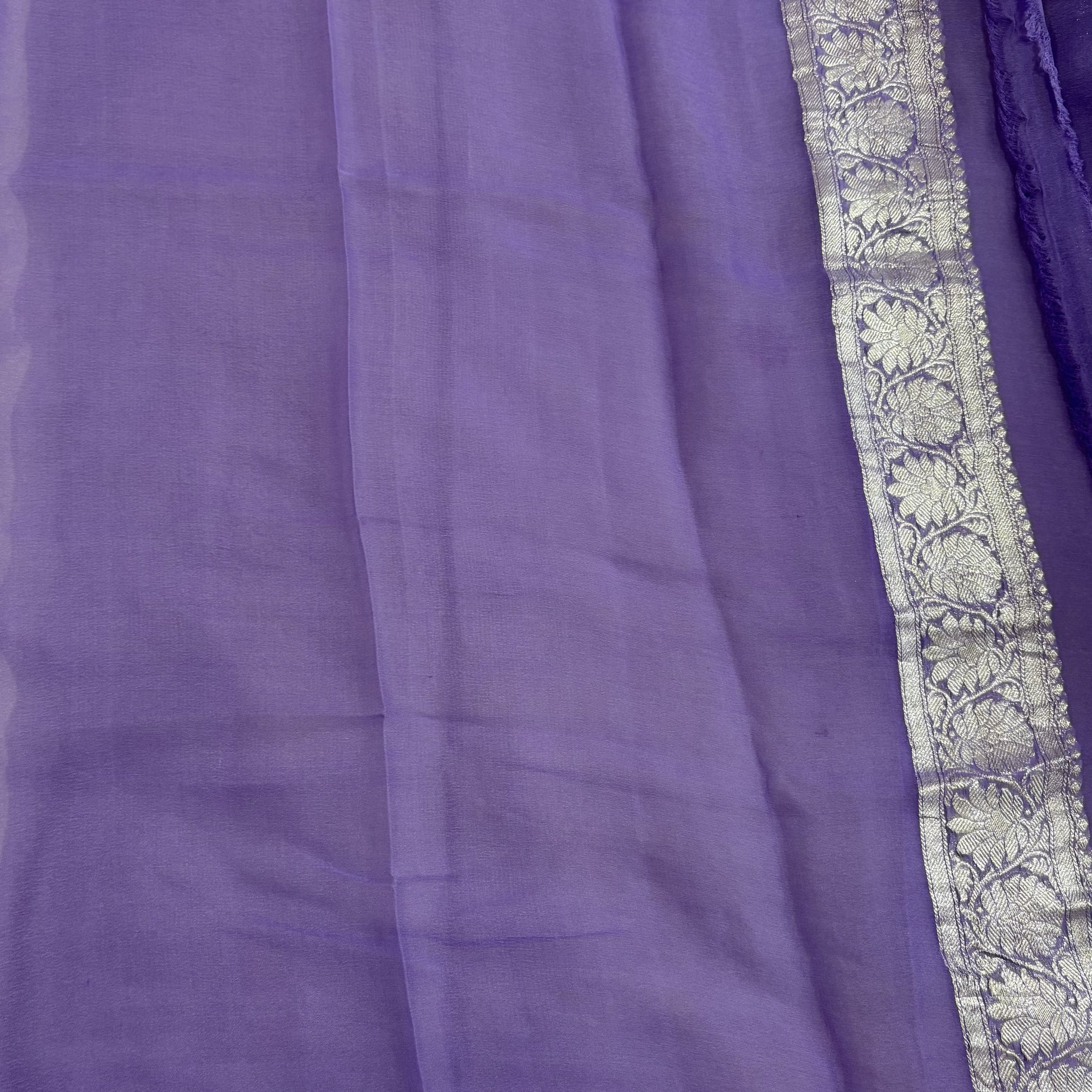 Lavender Banarasi Pure Khaddi Chiffon Saree