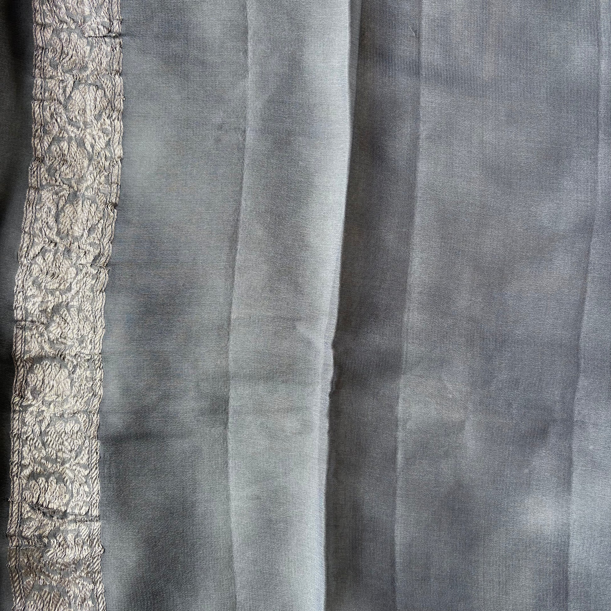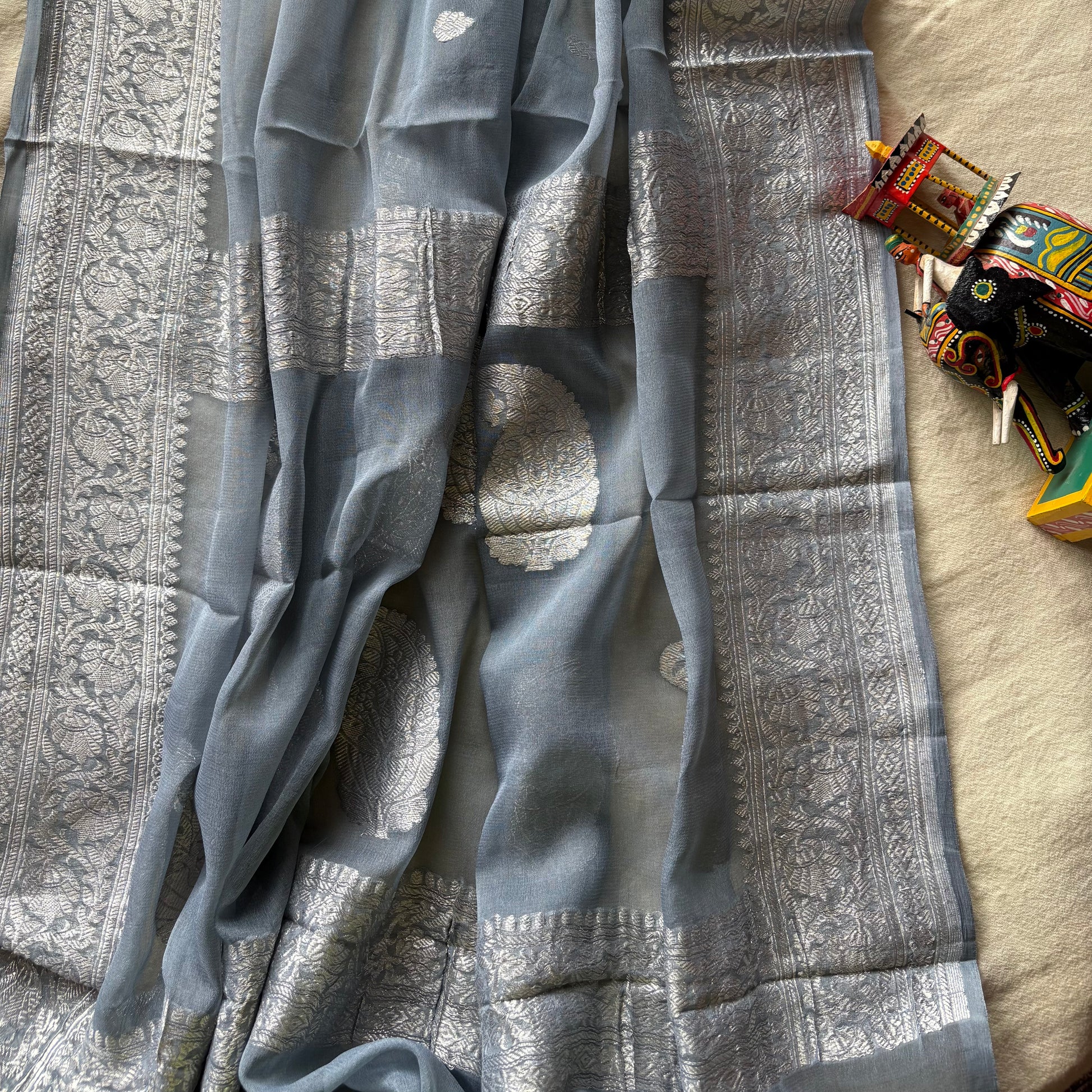 Light Grey Banarasi Pure Khaddi Chiffon Saree
